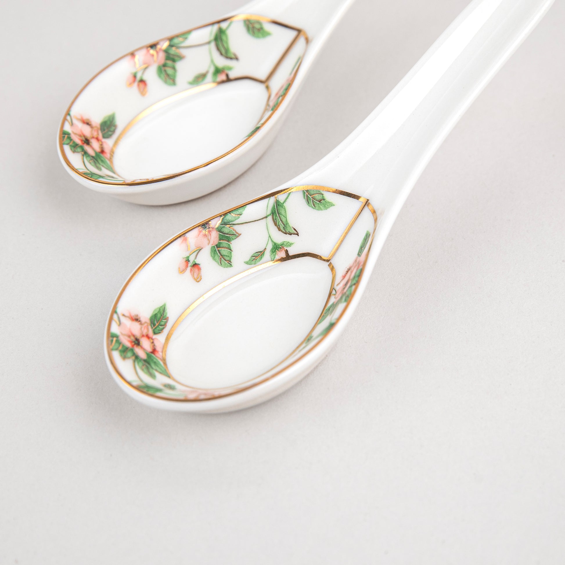 Delicate yet distinctive, the Gulnaar Soup Spoons are crafted in fine porcelain and adorned with hand-painted floral detailing inspired by Kashmir’s blooming gardens. Soft curves, subtle patterning, and a refined 24-karat gold accent along the rim lend an elegant finish, making these spoons as beautiful as they are functional.