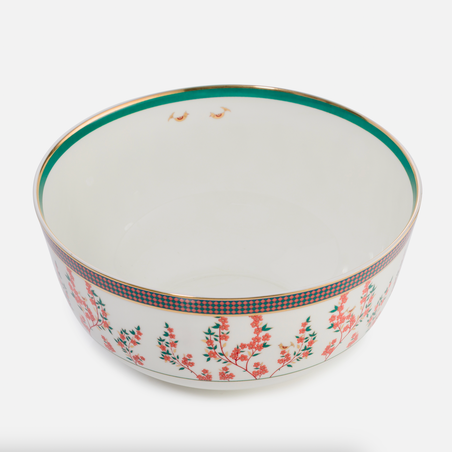 This stunning service bowl from the Myrtle Series is inspired by the enchanting gardens of the Alhambra Palace in Spain. The bowl features intricate designs that reflect the palace's botanical elegance and geometric artistry. Accented with 24-karat liquid gold, it exudes a sense of luxury and sophistication. Perfect for serving salads, fruits, or other shared dishes, this bowl is a beautiful blend of functionality and timeless design, making it an exceptional addition to any table setting.